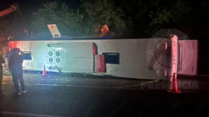 Se reporta un saldo de dos muertos y once lesionados tras el accidente. Pasajeros aseguran que el conductor tomaba bebidas embriagrantes Por FERNANDA MALPICA XALAPA, VER.-