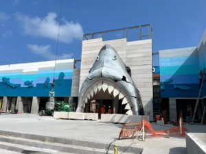 Veracruz, Ver.-Desde este fin de semana paseantes y turistas pueden admirar la colosal cabeza de tiburón que ya fue instalada en la entrada principal de