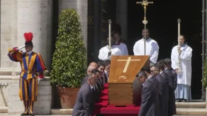 Antes de entrar al templo, un grupo de unas 40 personas –compuesto por pobres, presos, transexuales, personas sin techo y migrantes– esperaba el ataúd en la