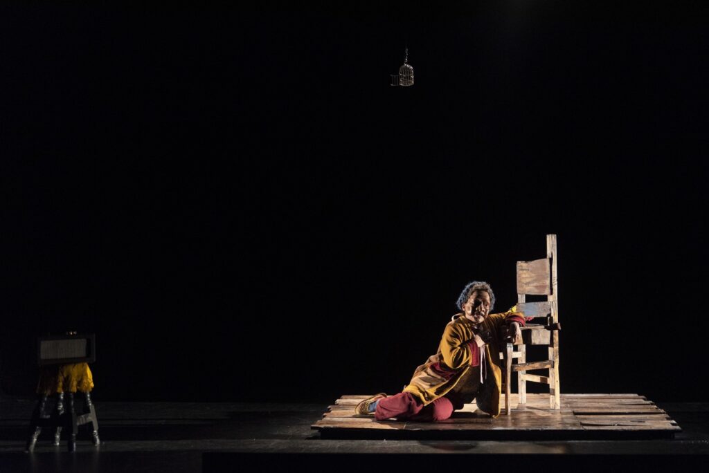 Con un escenario sencillo y la simplicidad de una silla, una escoba, una pequeña jaula de pájaro, unas flores y recursos mímicos de utilería, esta pieza escénica apuesta por ciertas convenciones teatrales complejas y simples con un discurso claro.