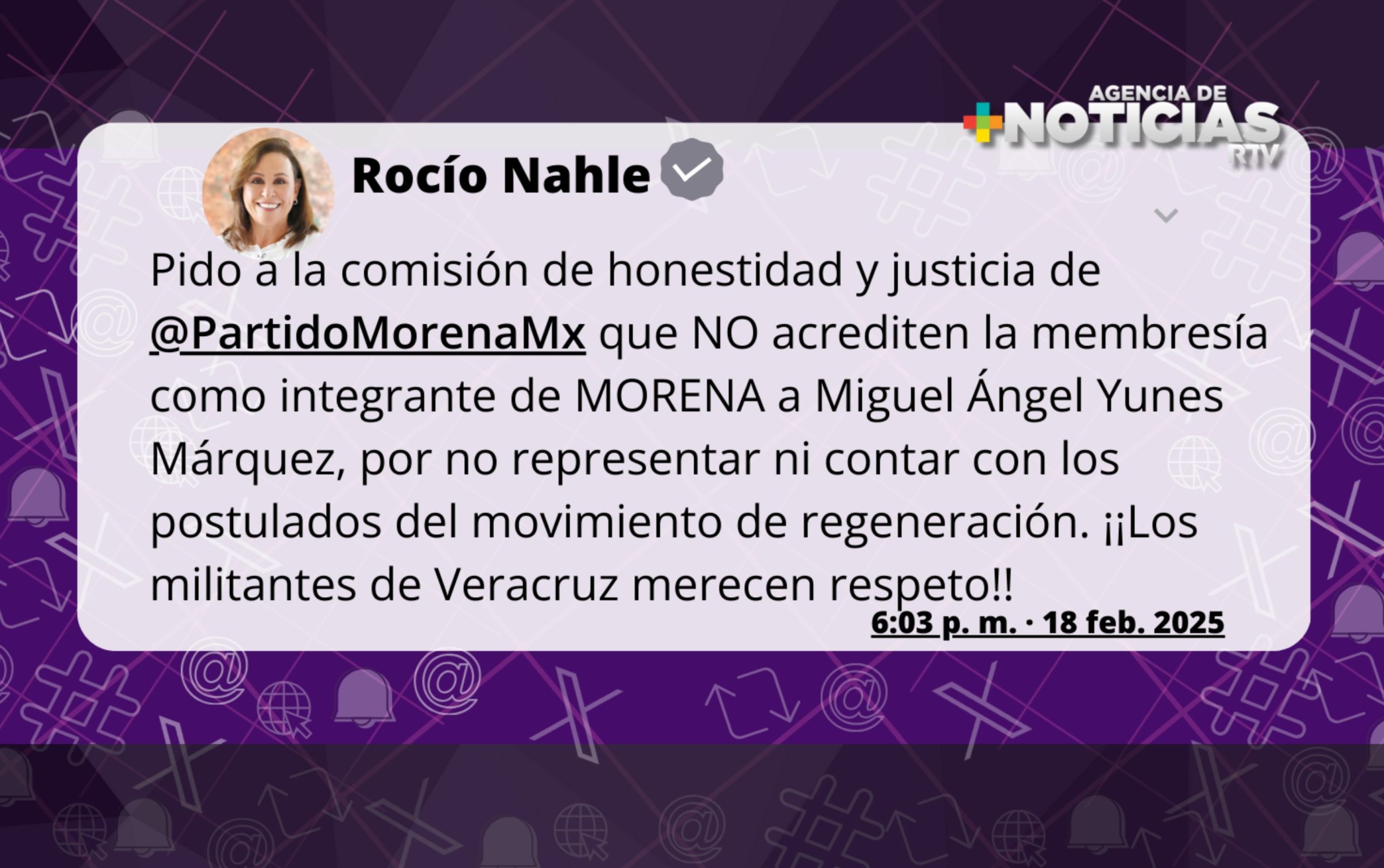Xalapa, Ver.- El Comité Ejecutivo Estatal de Morena respalda a la Gobernadora Rocío Nahle en su petición de frenar el ingreso de Miguel Ángel Yunes Márquez al partido; sostienen que Morena no será refugio para quienes han representado el abuso del poder, la corrupción y la traición a los principios de la cuarta transformación.