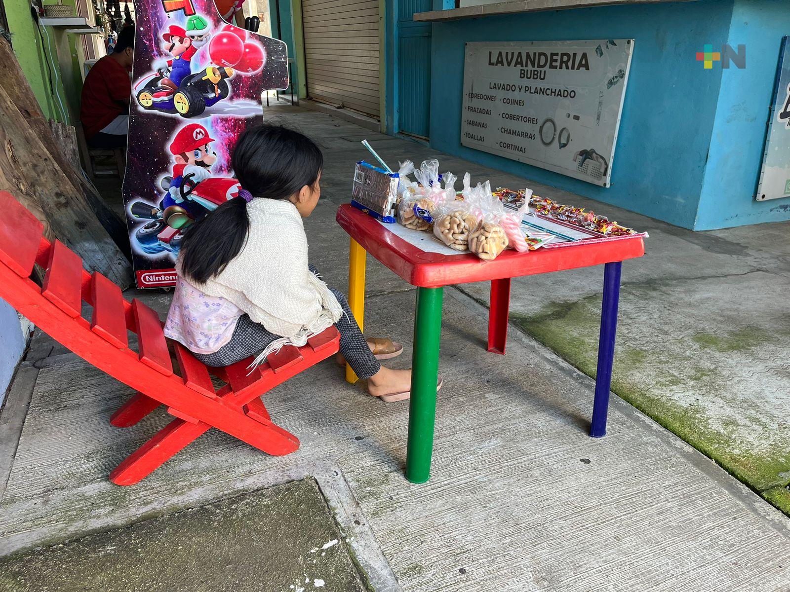 Coatzacoalcos, Ver.- Hellen, de 8 años, vende dulces en un pequeño puesto para reunir dinero que le permita cubrir los gastos de traslado a Villahermosa, Tabasco, donde será operada de paladar hendido.