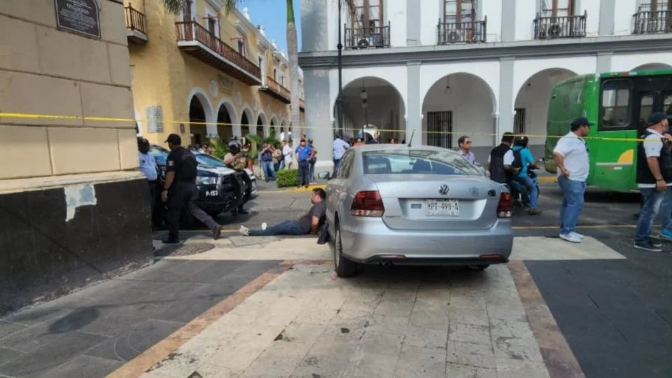 En imágenes se puede observar al automovilista esposado en el suelo al costado de la llanta de lado del piloto, donde se le observa también con golpes y sangre en el rostro. De acuerdo con uno de los afectados, el conductor impactó su auto por detrás desde la calle 16 de septiembre, desde donde aparentemente ya venía en sentido contrario.