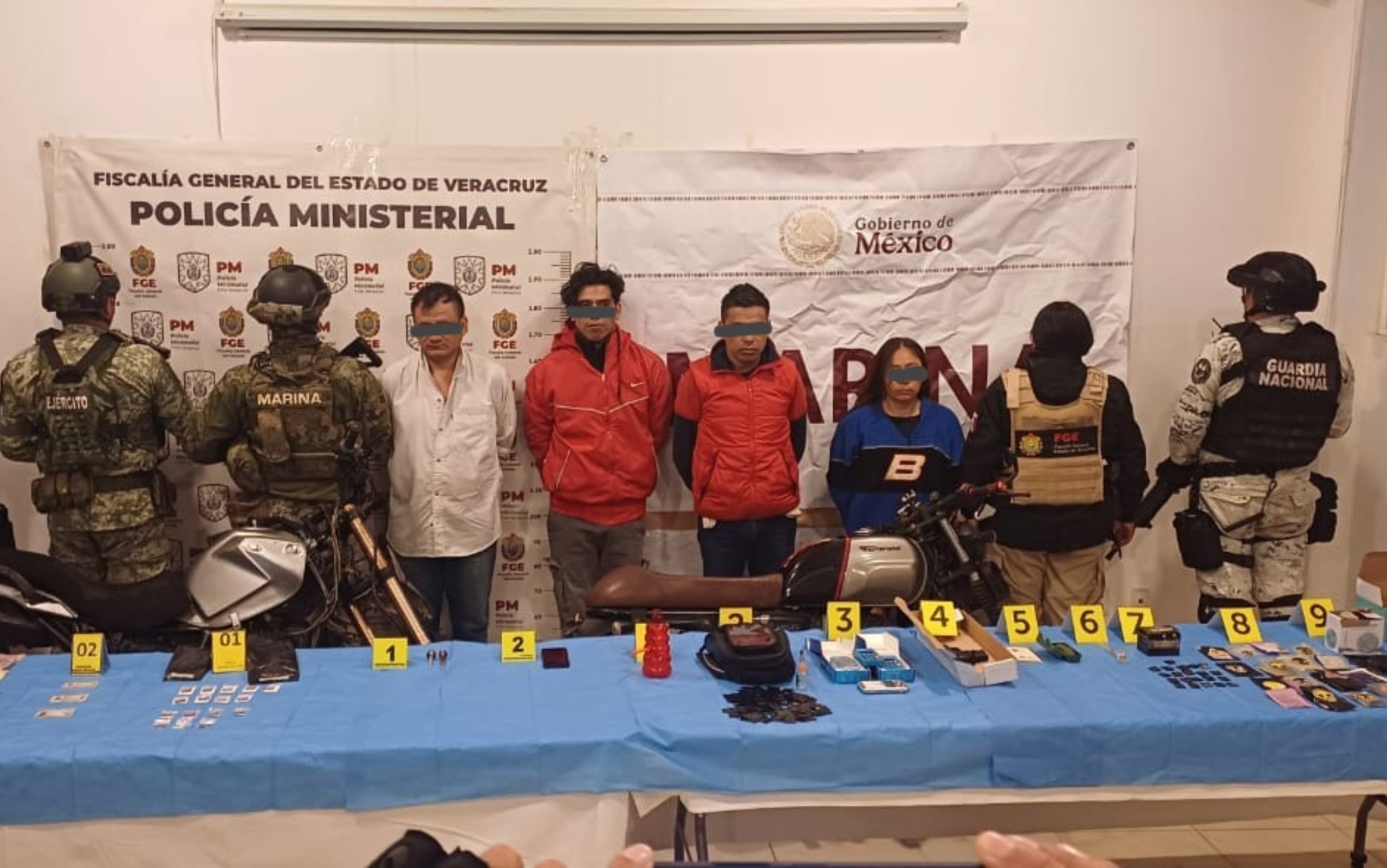 Como resultado de las acciones, se logró la detención de cuatro personas, así como, el aseguramiento de 37 dosis de estupefacientes, dos motocicletas, una réplica de arma de fuego y dinero en efectivo.