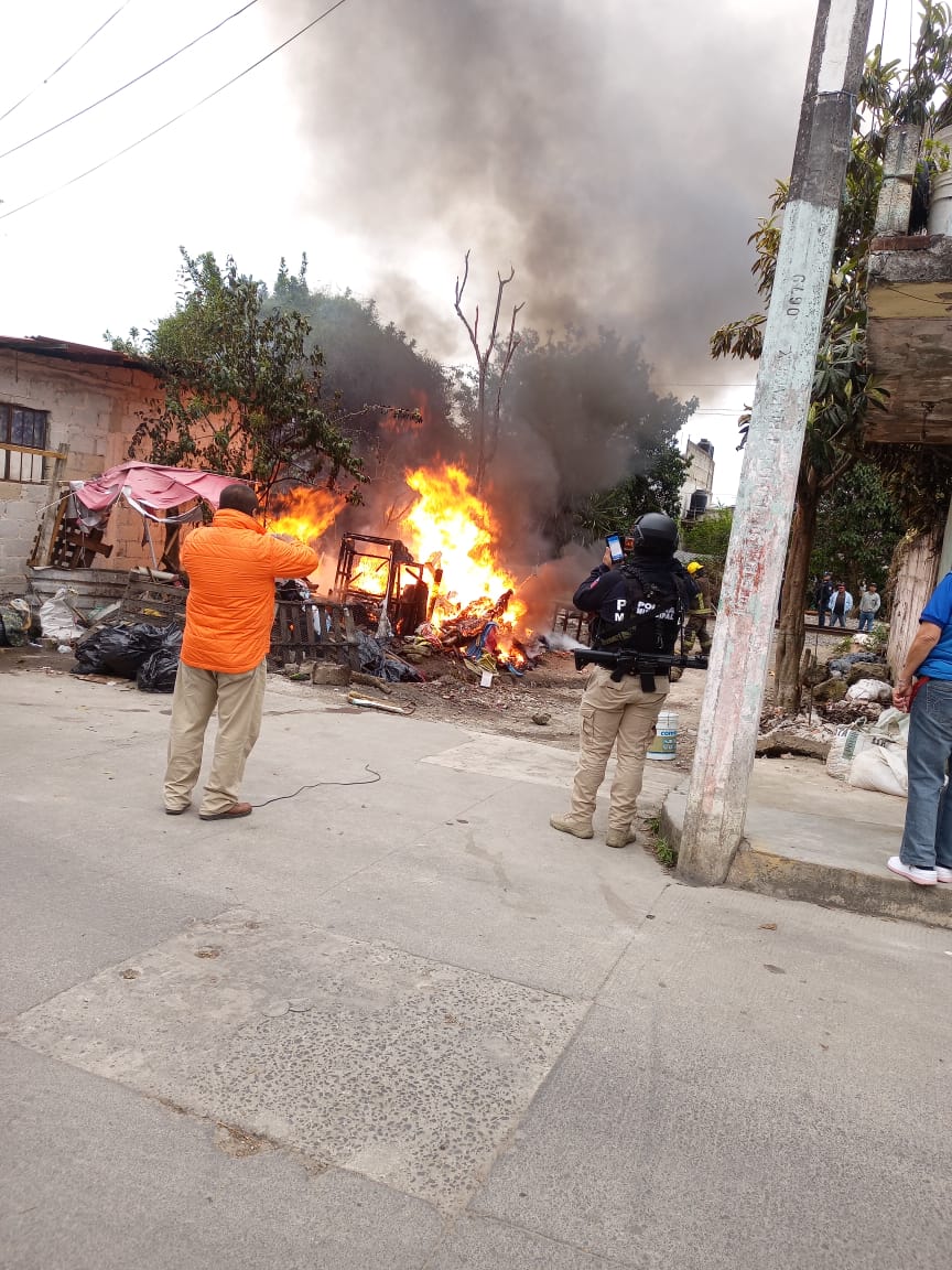 Xalapa, Ver.,10/03/2025.- Al llamado de emergencia, la mañana de hoy alrededor de las 7:30, vecinos cercanos a la vía del ferrocarril que conecta con la colonia Revolución, alertaron del incendio provocado por los malvivientes que están hacinados en ese tramo con la complacencia de los dueños de ese lote en el que ocupan como guarida para sus fechorías como son los asaltos a todo aquel transeúnte que tiene la necesidad de atravesar ese tramo, amen de que en ese tramo esta ubicada la preparatoria Unidad y Trabajo, la secundaria Técnica 72 y un Jardín de Niños.