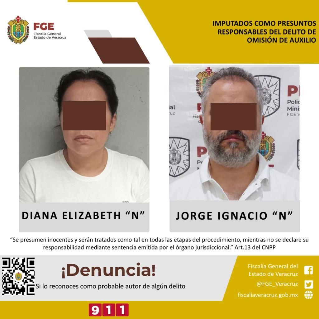 La Fiscalía Especializada en Investigación de Delitos de Violencia contra la Familia, Mujeres, Niñas y Niños y Trata de Personas realizó imputación en contra de Diana Elizabeth “N” y Jorge Ignacio “N” como presuntos responsables del delito de omisión de auxilio cometido en agravio de quién en vida respondiera a las iniciales M.B.R., hechos ocurridos el 17 de abril del 2021, en el municipio de Boca del Río.